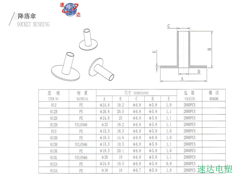 深圳市速达塑胶电子有限公司,厂家供应塑胶降落伞护套,此产品广泛用于电子电器、灯饰照明等行业及领域, 欢迎来电/函咨询更多相关产品,销售热线0755-28063944。